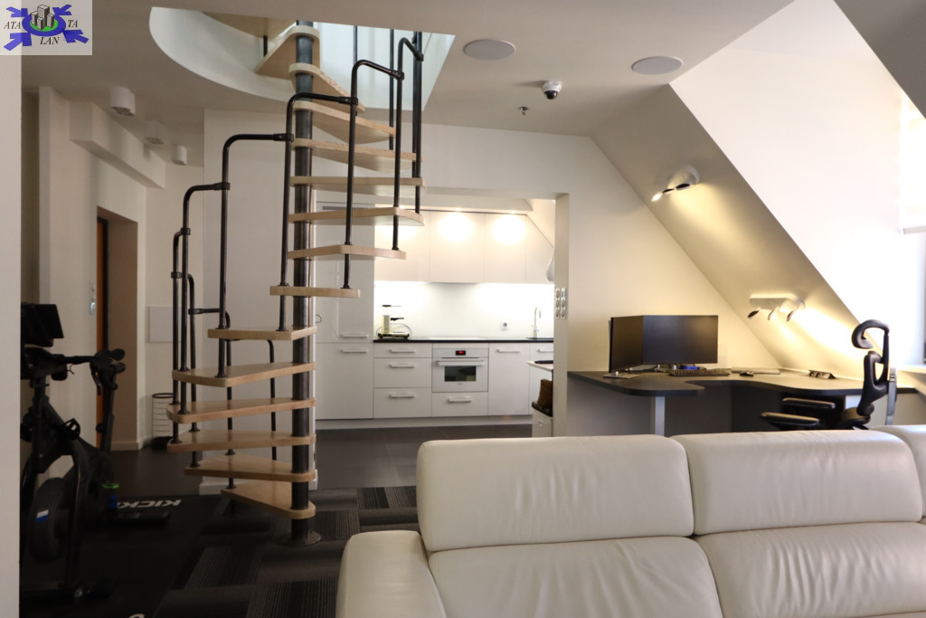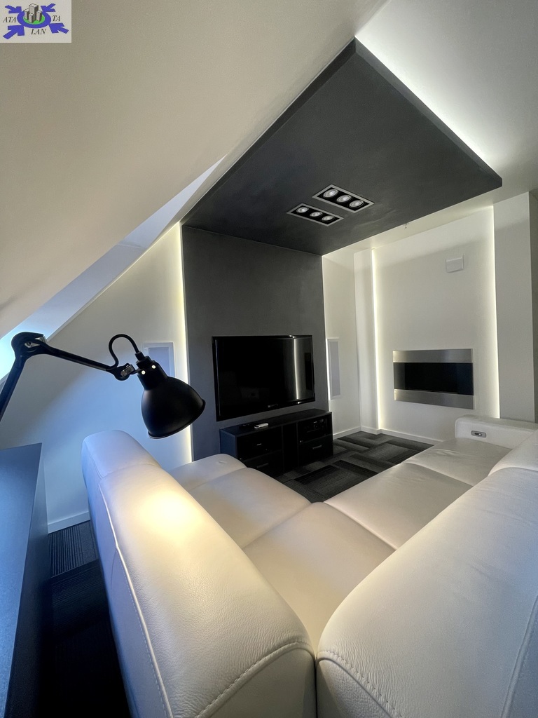 - Wbudowany system TV i rozprowadzone w mieszkaniu głośniki Monitor Audio.