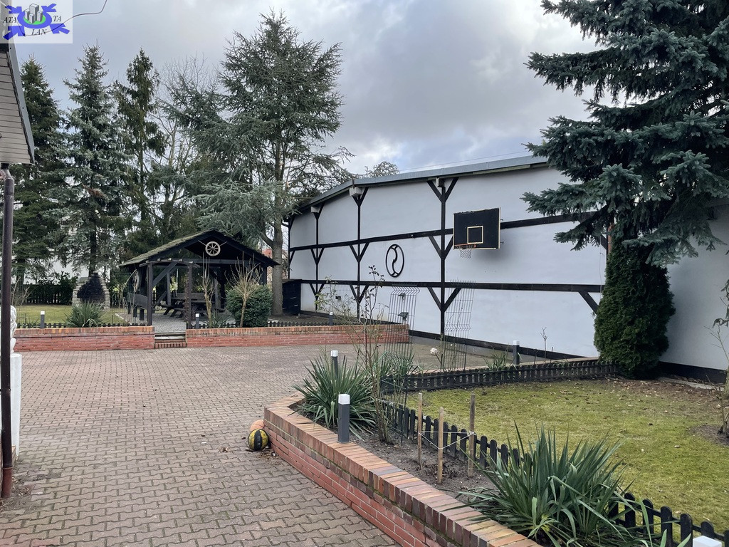 Dom na dużej działce, hala magazynowa, pomieszczenia gospodarcze. Część działki niezagospodarowana - obecnie obsiana trawą- powierzchnia tej części wynosi 4471 m2. Jest tam ładne oczko wodne. Cała działka oznaczona symbolem B ( budowlana)