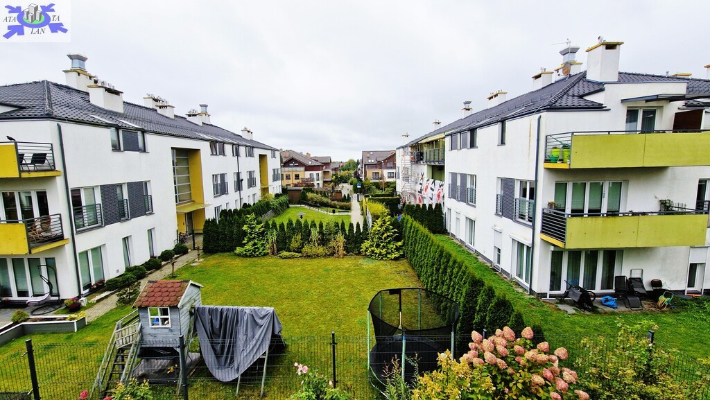 Dodatkowo duży balkon z markizą, z widokiem na ogrody i tereny zielone.