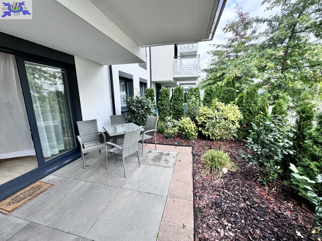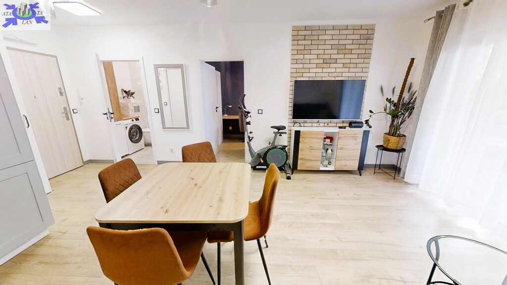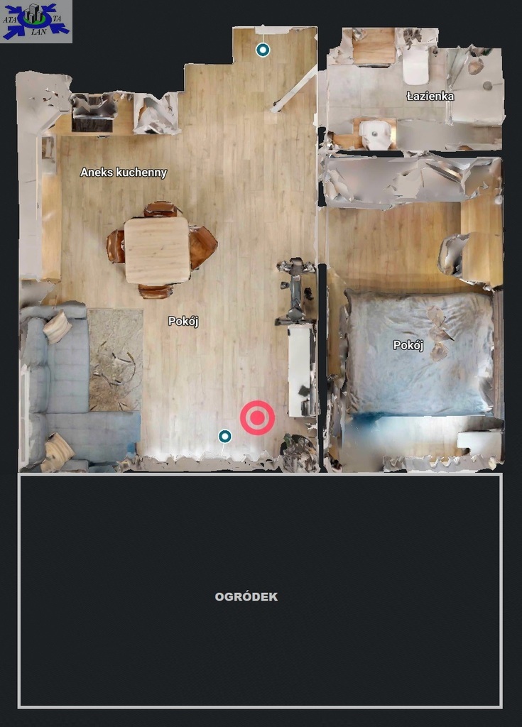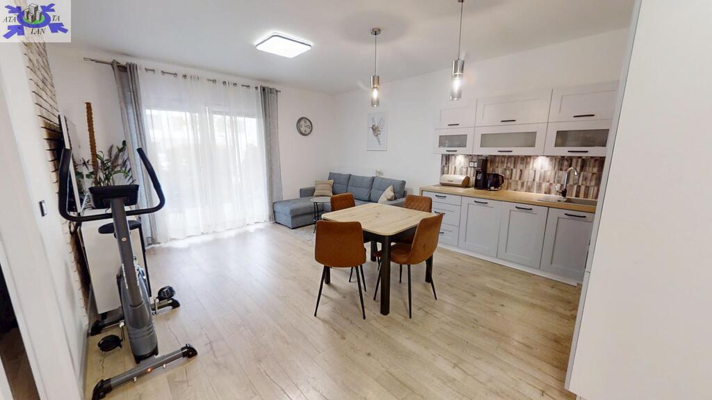 - salon z aneksem kuchennym i wyjściem na pięknie zagospodarowany, zielony ogródek o powierzchni 34m2,