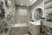 Kuchnia z niezbędnym sprzętem AGD, m.in. pralko-suszarka, zmywarka i piekarnik, lodówka, płyta indukcyjna.