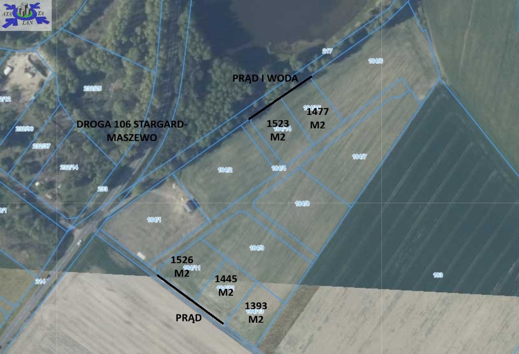 * 1482 m2, 1654m2, 1752m2, 1849 m2 z doprowadzonym PRĄDEM. Cena 75 zł brutto /m2