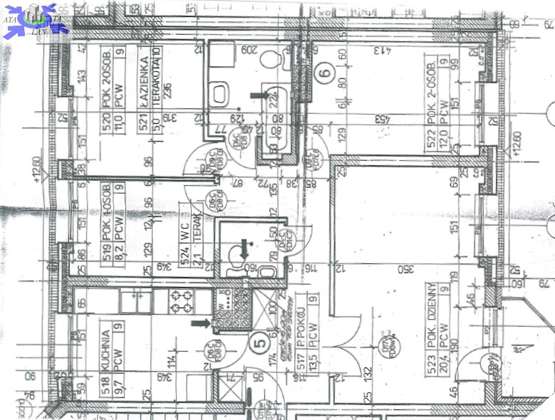 - 4 pokoi, o powierzchni ok. 8m2, 11m2, 12m2 oraz 20m2