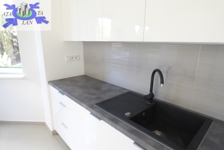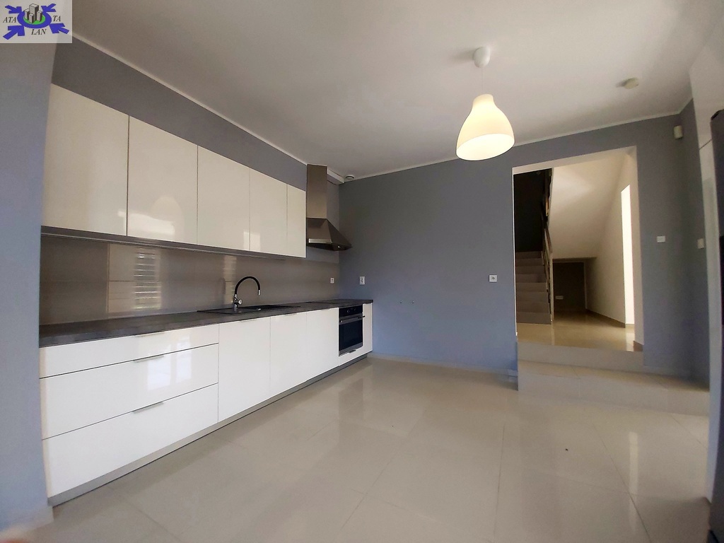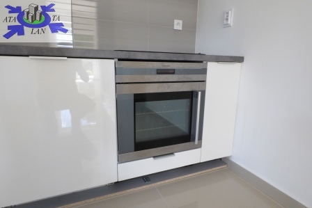W kuchni - meble MDF wysoki połysk w zabudowie z pełnym wyposażeniem AGD.