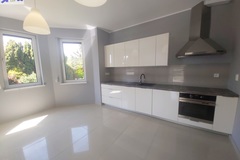 W kuchni - meble MDF wysoki połysk w zabudowie z pełnym wyposażeniem AGD.
