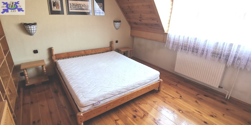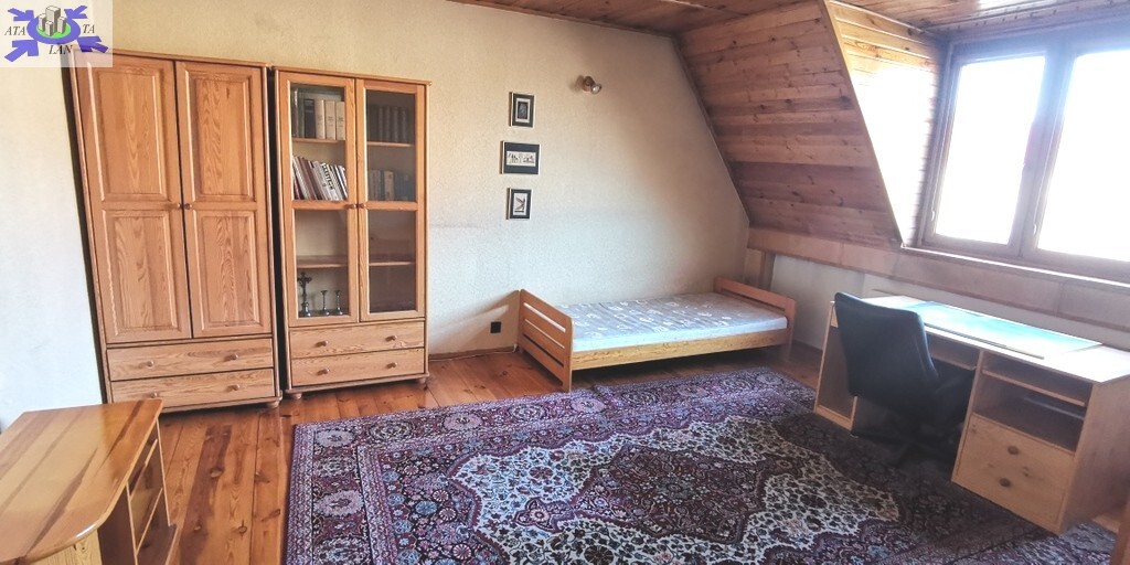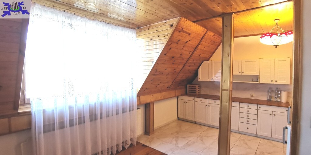 W pokojach i przedpokoju na podłogach gruba, wycyklinowana deska. Drzwi wewnętrzne drewniane. Sufity i skosy obłożone deską.