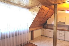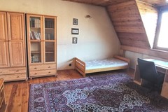 W pokojach i przedpokoju na podłogach gruba, wycyklinowana deska. Drzwi wewnętrzne drewniane. Sufity i skosy obłożone deską.