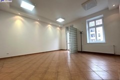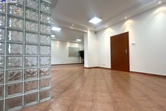 - pomieszczenie biurowe od frontu (pow. 43,90 m2) z wydzielonymi dwoma strefami (pierwsza z wejściem z ulicy, druga z balkonem), na podłodze terakota, okna PCV, rolety zewnętrzne, przegroda ze szklanej cegły przy wejściu