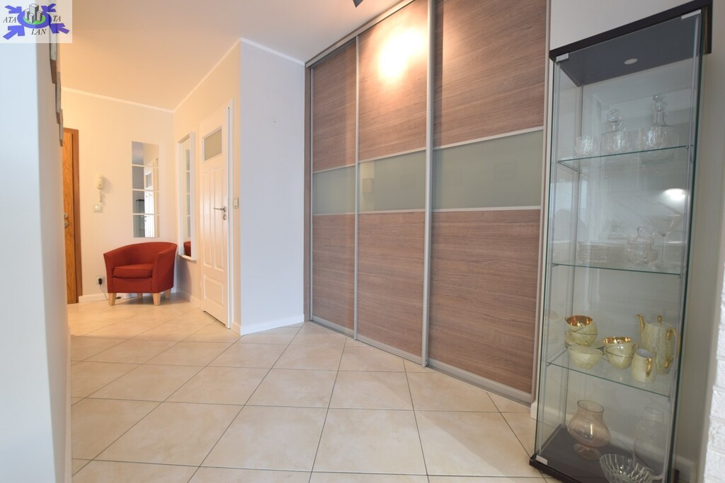 - przedpokój z dwoma bardzo dużymi szafami w zabudowie stałej ( jedna, czteroskrzydłowa, w pobliżu pokoi sypialnych służy jako garderoba/ druga, bliżej salonu, pełni funkcję - pom. gospodarczego).