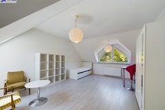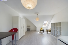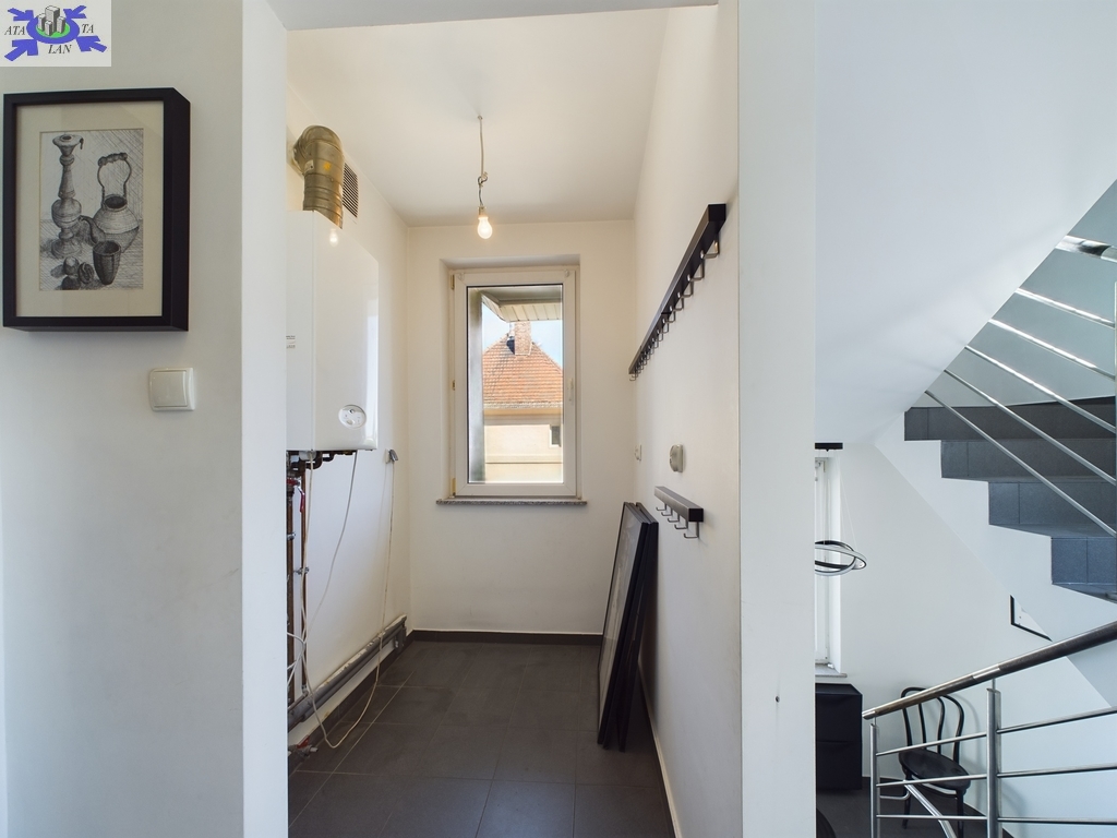 Mieszkanie zajmuje pierwsze piętro oraz poddasze budynku. Pomieszczenia są jasne, a układ pozwala na wyraźny podział na część dzienną i prywatną.