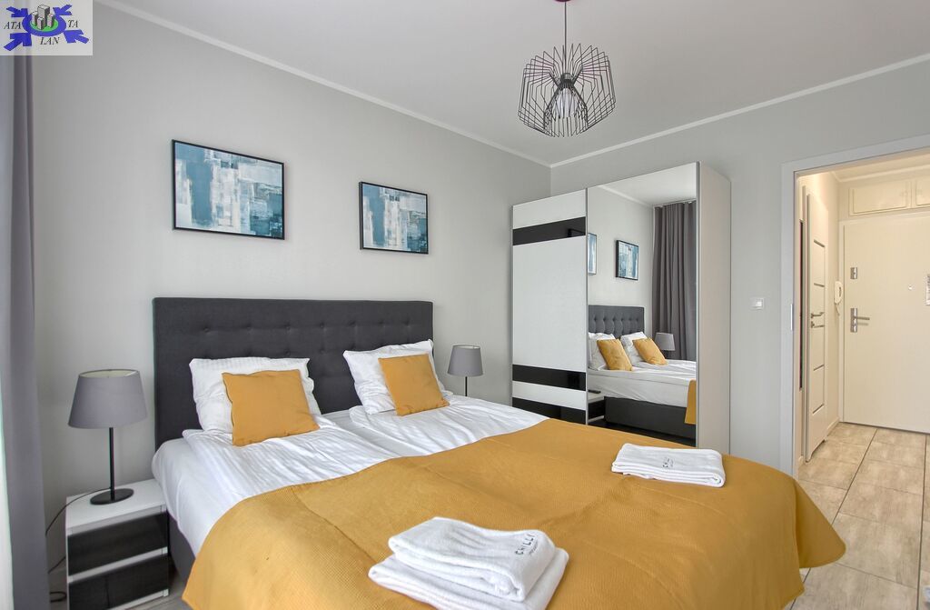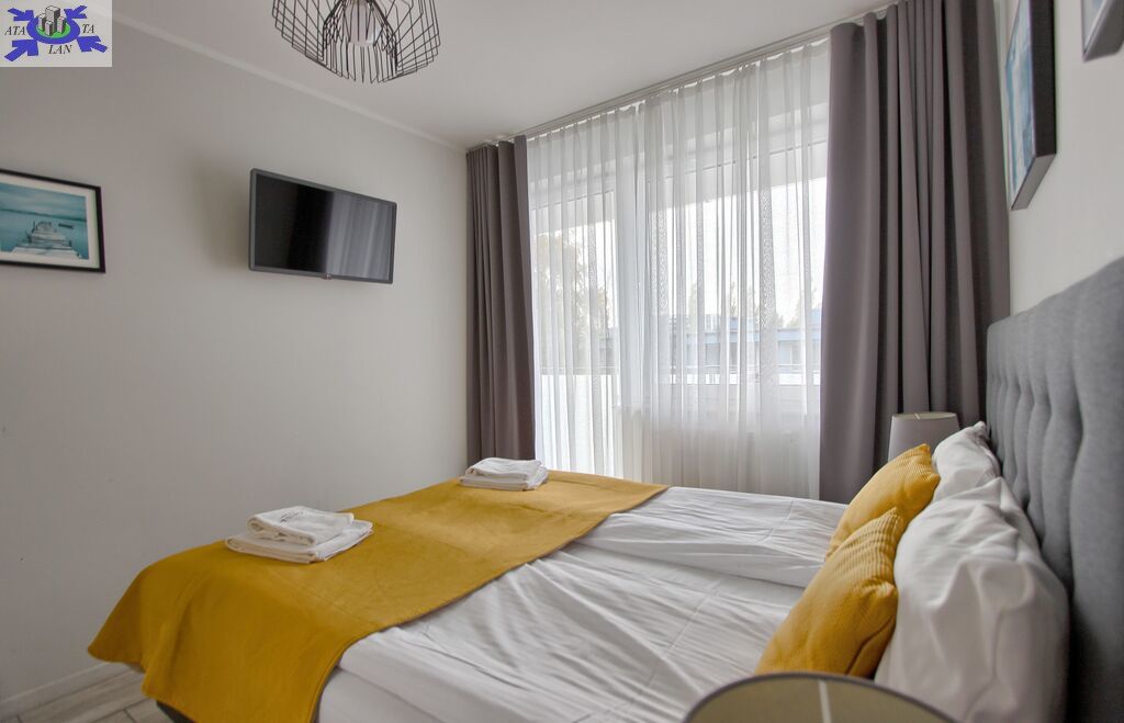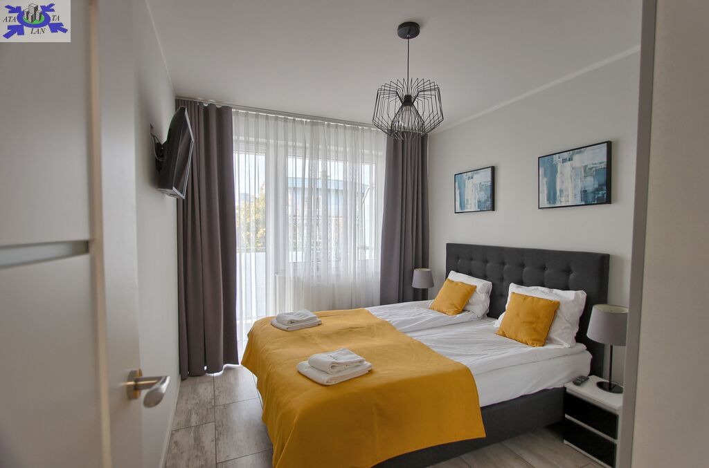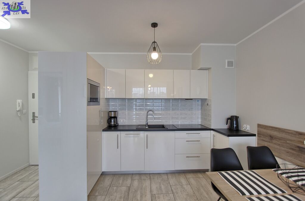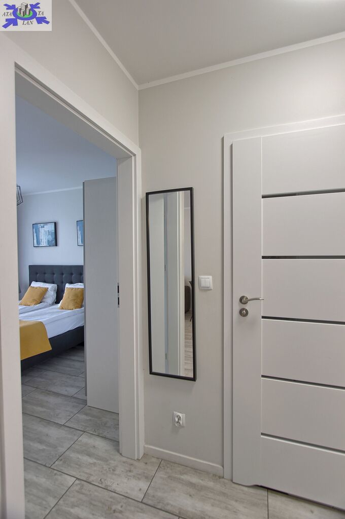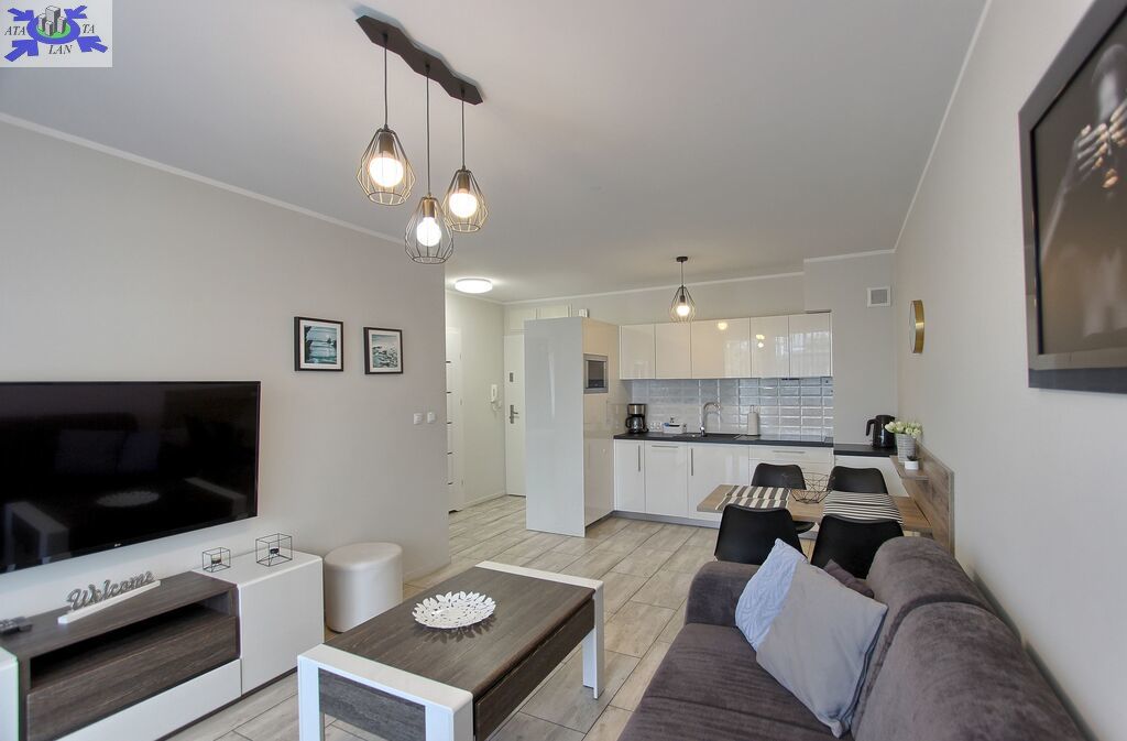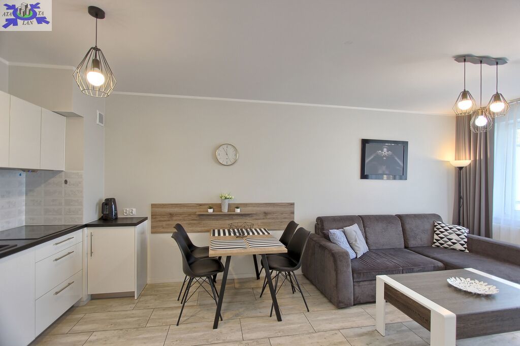 Apartament umeblowany, ładnie i wygodnie urządzony. Powierzchnia to prawie 38 m2. Składa się z salonu z rozkładaną kanapą, w pełni wyposażonego aneksu kuchennego oraz sypialni z łożem małżeńskim i łazienki z prysznicem. Dodatkowym atutem jest taras na który można wyjść z sypialni, jak i z salonu. W budynku znajduje się siłownia, rowerownia, a na dachu taras z leżakami. Teren obiektu jest ogrodzony. Budynek wybudowany przez solidnego kołobrzeskiego dewelopera, dobrze zarządzany. Koszty utrzymania to około 600 zł. Ogrzewanie i ciepła woda z sieci miejskiej.