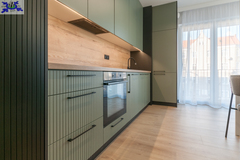 * meble kuchenne w zabudowie ze sprzętem AGD - lodówka, zmywarka, zlew, bateria, płyta grzewcza, piekarnik, okap,