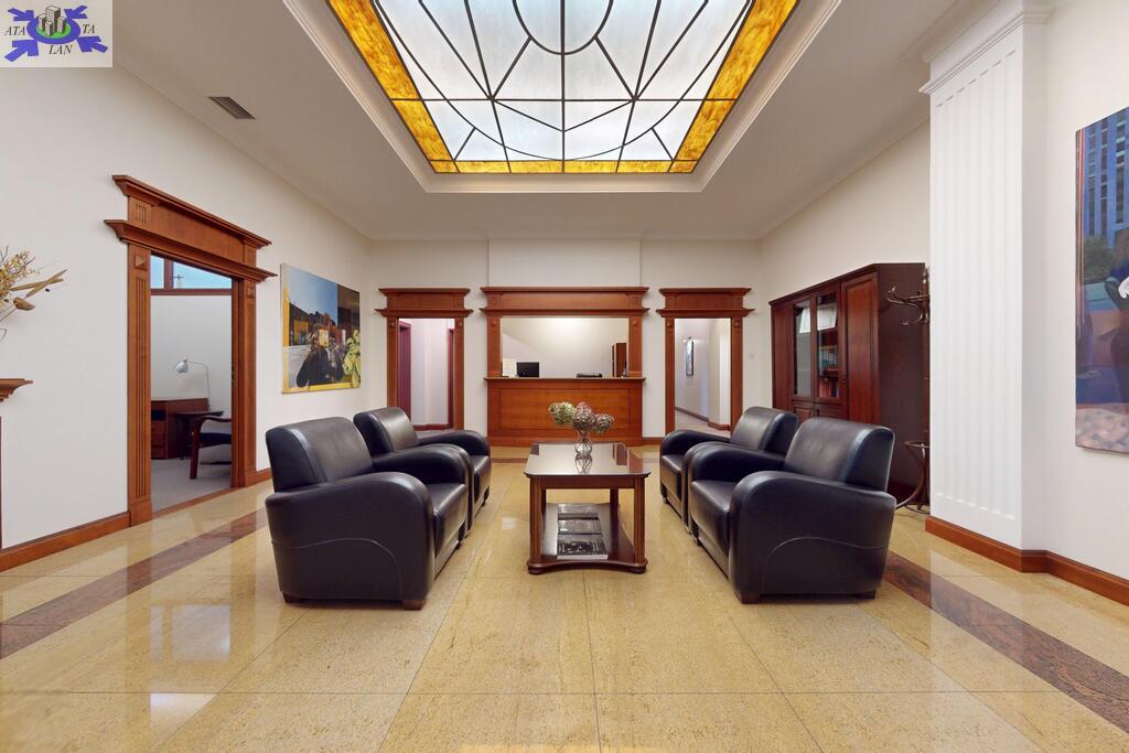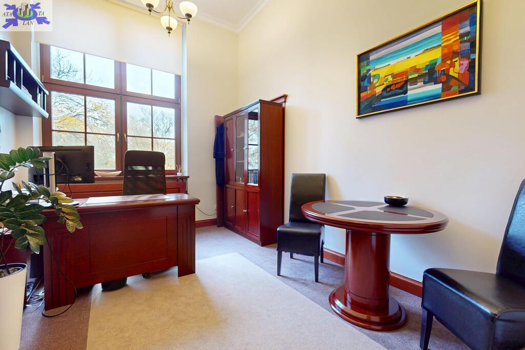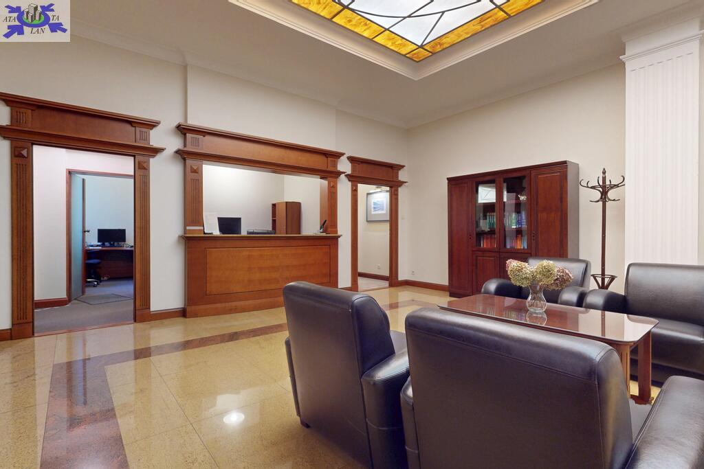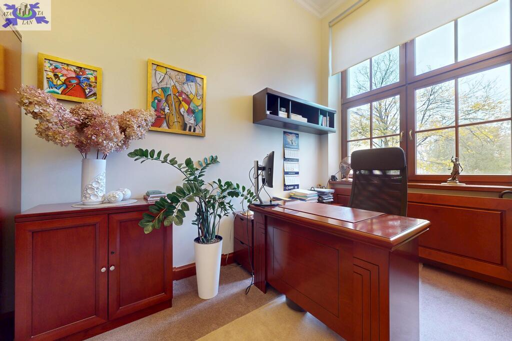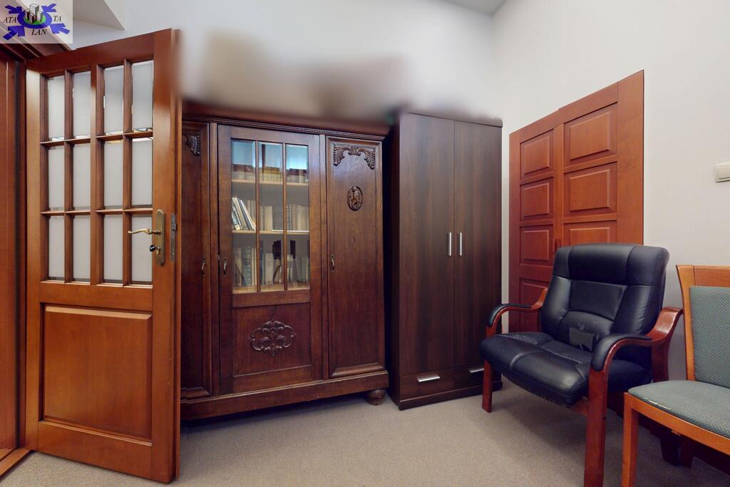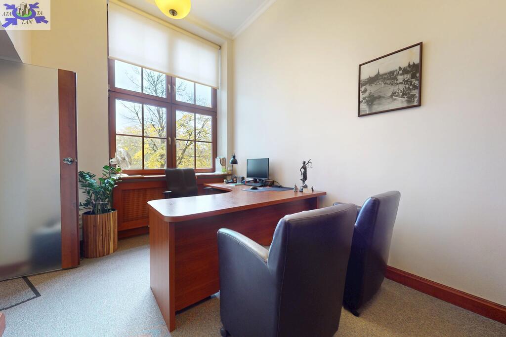 Pierwsza część o powierzchni 240 m2 jest kompletnie wykończona w bardzo wysokim standardzie, z wnętrzami utrzymanymi w stylowym, eleganckim charakterze. W jej skład wchodzi przestronny i reprezentacyjny hol, który stanowi doskonałe pierwsze wrażenie dla klientów oraz wizytówkę lokalu. Dalej znajduje się pięć okazałych, reprezentacyjnych gabinetów, zaprojektowanych z dbałością o detale i komfort pracy. Wydzielono również część socjalną, obejmującą toaletę oraz w pełni wyposażoną kuchnię, co zapewnia wygodę codziennego użytkowania. Ta część lokalu jest gotowa do natychmiastowego wprowadzenia i doskonale nadaje się na kancelarię notarialną, adwokacką, biuro doradcze, gabinety lekarskie lub prestiżową siedzibę firmy.