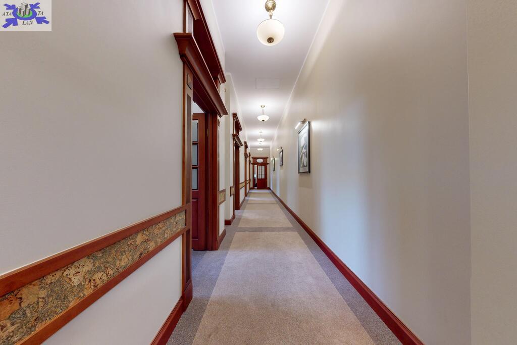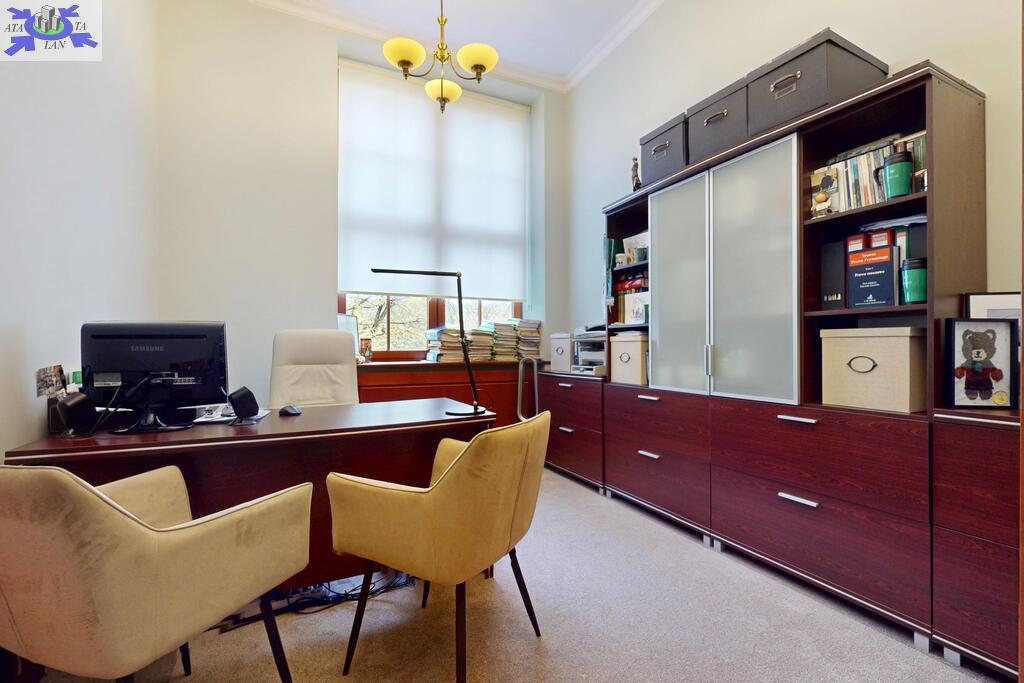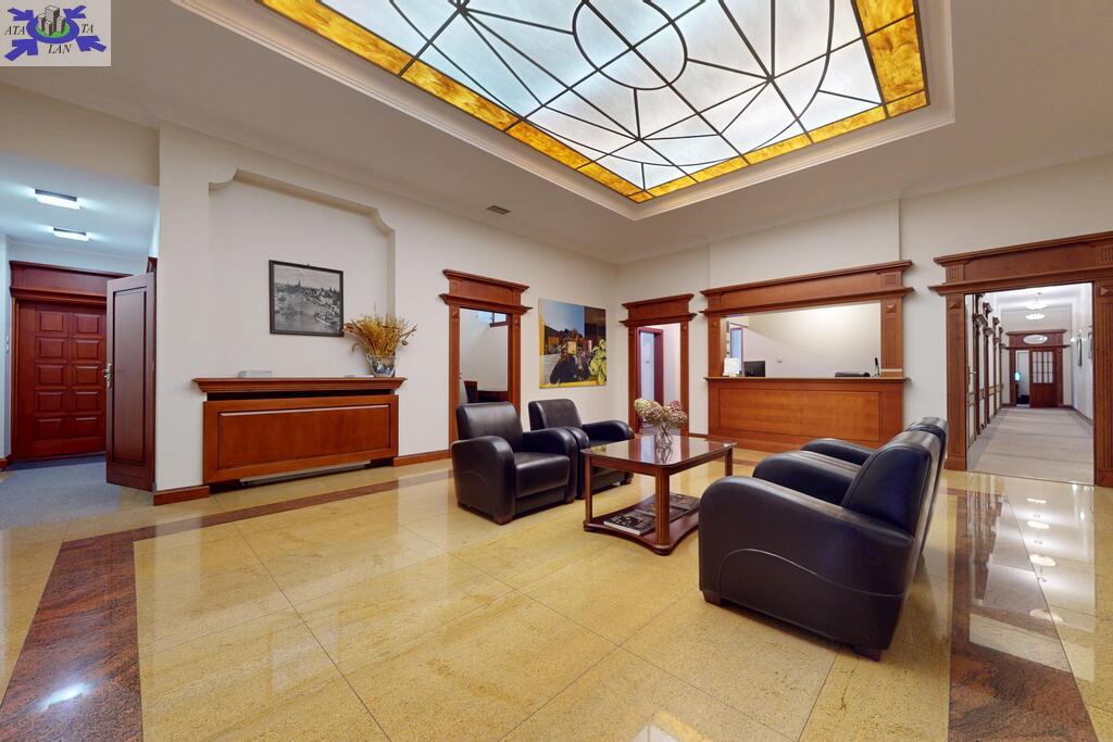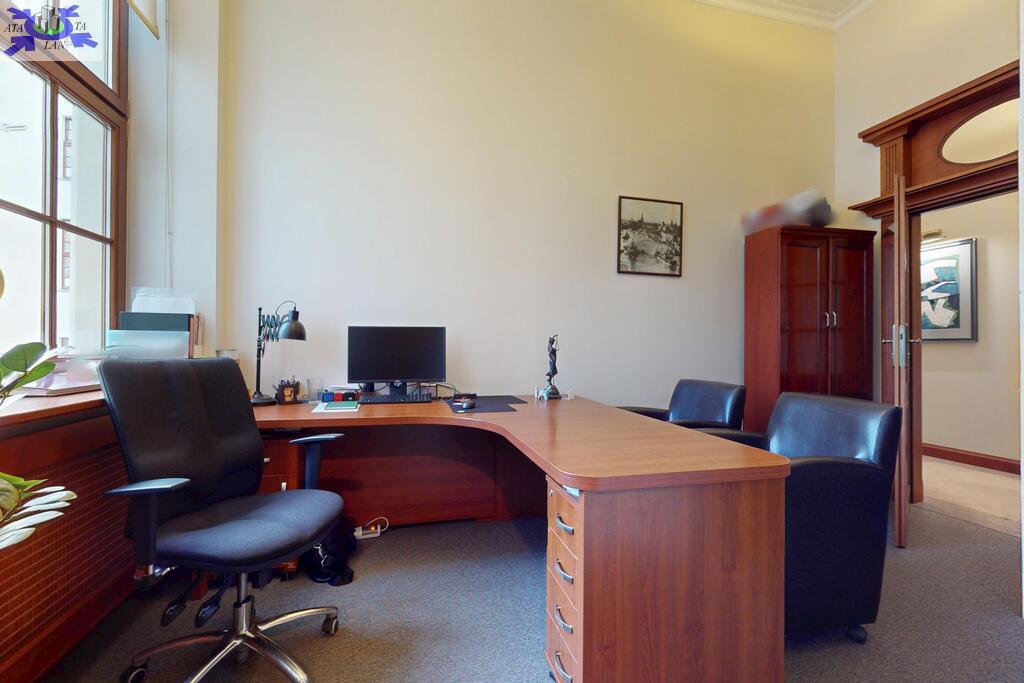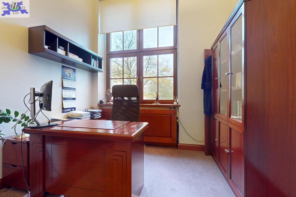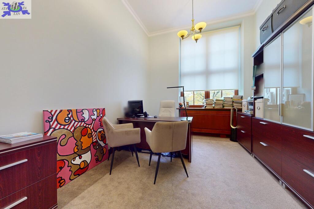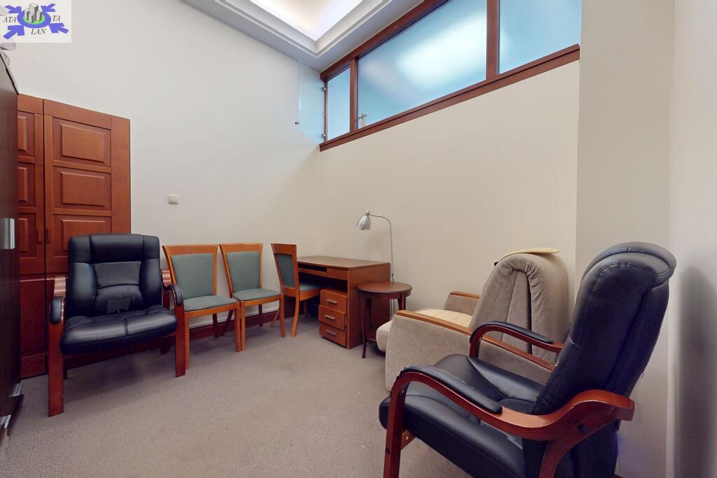 Pierwsza część o powierzchni 240 m2 jest kompletnie wykończona w bardzo wysokim standardzie, z wnętrzami utrzymanymi w stylowym, eleganckim charakterze. W jej skład wchodzi przestronny i reprezentacyjny hol, który stanowi doskonałe pierwsze wrażenie dla klientów oraz wizytówkę lokalu. Dalej znajduje się pięć okazałych, reprezentacyjnych gabinetów, zaprojektowanych z dbałością o detale i komfort pracy. Wydzielono również część socjalną, obejmującą toaletę oraz w pełni wyposażoną kuchnię, co zapewnia wygodę codziennego użytkowania. Ta część lokalu jest gotowa do natychmiastowego wprowadzenia i doskonale nadaje się na kancelarię notarialną, adwokacką, biuro doradcze, gabinety lekarskie lub prestiżową siedzibę firmy.