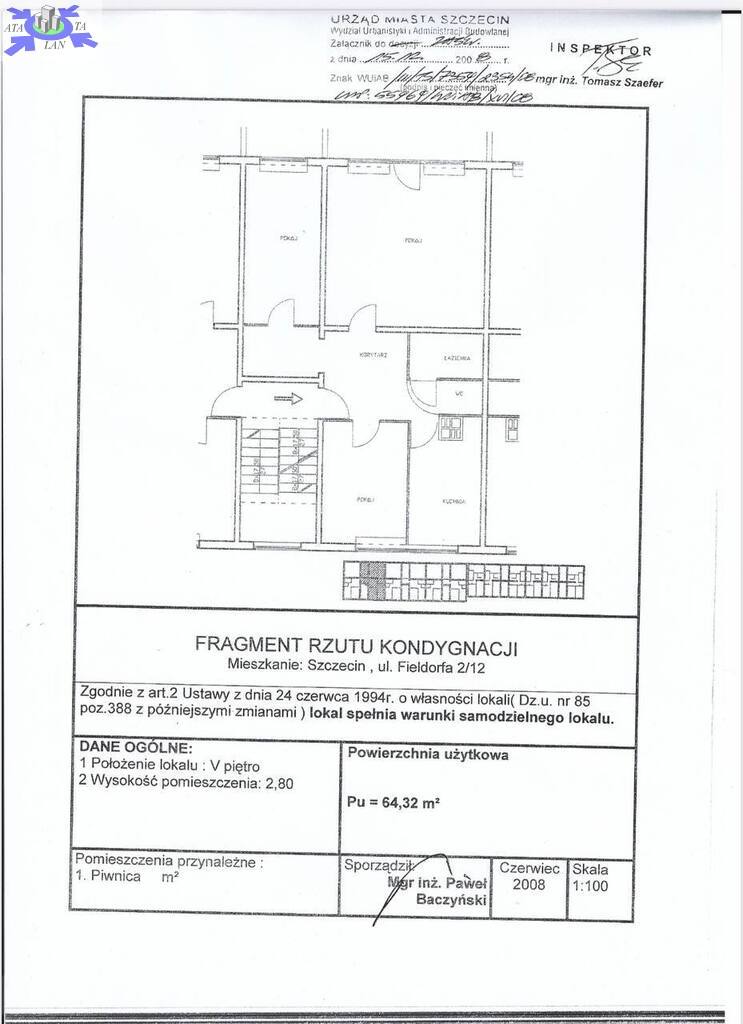 Na sprzedaż przestronne, 4-pokojowe mieszkanie o powierzchni 64,32 m2, położone na 4. piętrze w zadbanym budynku.