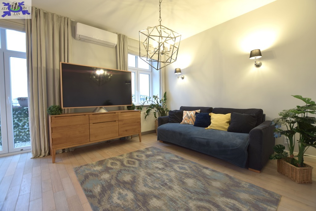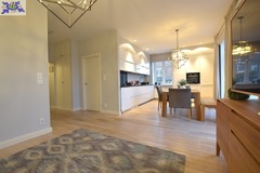 Salon połączony z kuchnią o powierzchni około 30m2 z wyjściem na słoneczny balkon.