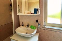 Oferujemy na sprzedaż dom o pow .100 m2 w zabudowie szeregowej z basenem, położony w wyjątkowo pięknym miejscu bezpośrednio nad morzem na terenie doskonale utrzymanego parku w Baia Del Carpino . Na parterze znajduje się przestronny salon, osobna kuchnia z jadalnią , i łazienka.
