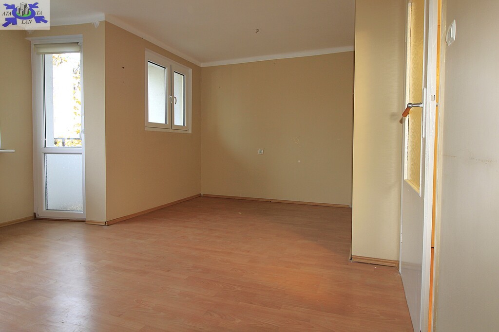 Układ pomieszczeń duży, jasny pokój dzienny z wyjściem na balkon,