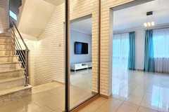 Na powierzchnię parteru budynku, pełniącego jednocześnie rolę strefy dziennej domu, składają się kuchnia z jadalnią, przestronny salon z którego wychodzi się na taras oraz zaaranżowany ogród, łazienka z wc, pomieszczenie sanitarno - gospodarcze z bezpośrednim wejściem do garażu (2. stanowiskowy, z bramą otwieraną na pilota), korytarz i wiatrołap. Na piętro nieruchomości prowadzą piękne, marmurowe schody (Breccia). W górnej części domu, pełniącej głownie strefę nocną, stanowią 3. sypialnie, pokój wielofunkcyjny, główna łazienka z wc oraz korytarz.