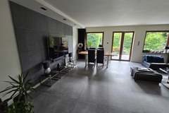 * salon 37 m2 z wyjściem na taras 15 m2 ('kamienny dywan') i ogródek z tarasu wejście do oranżerii i większego garażu (łączna pow. 45 m2). W centrum salonu bio-kominek