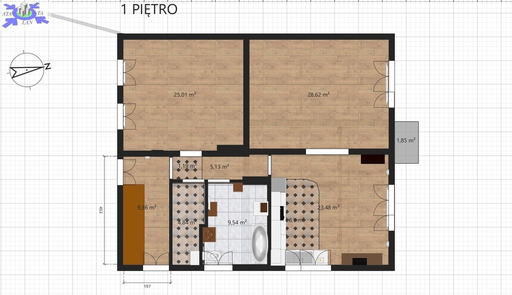 - salonu z aneksem kuchennym - 23 m2