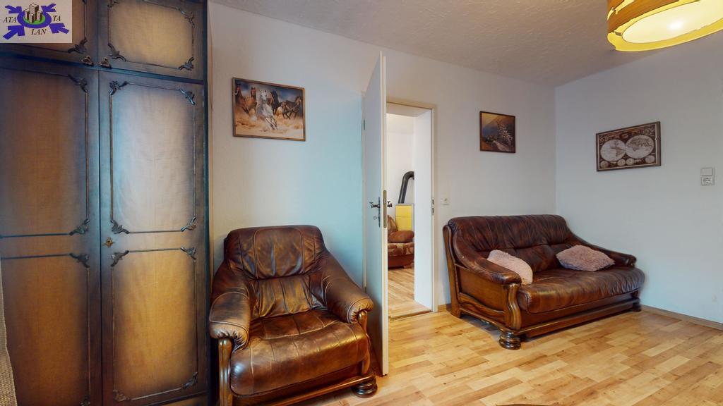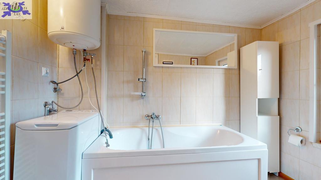 Na parterze znajdują się dwa oddzielne mieszkania ze wspólną drewnianą werandą, w każdym z nich przedpokój, sypialnia, przestronny pokój dzienny, kuchnia, łazienka, dodatkowy pokój.