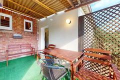 Na parterze znajdują się dwa oddzielne mieszkania ze wspólną drewnianą werandą, w każdym z nich przedpokój, sypialnia, przestronny pokój dzienny, kuchnia, łazienka, dodatkowy pokój.