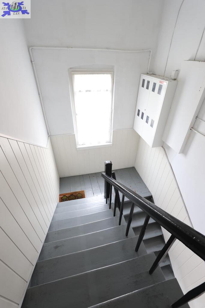 Mieszkanie do remontu o powierzchni 41,15 m2, składa się z salonu, pokoju, kuchnia, łazienka, przedpokoju, wc, położone na I piętrze kamienicy. Bezpośrednio nad mieszkaniem na strychu znajduje się pokój o pow. 15,09 m2.