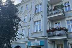 Nieruchomość znajduje się na parterze kamienicy ze zrobioną i zadbaną elewacją.