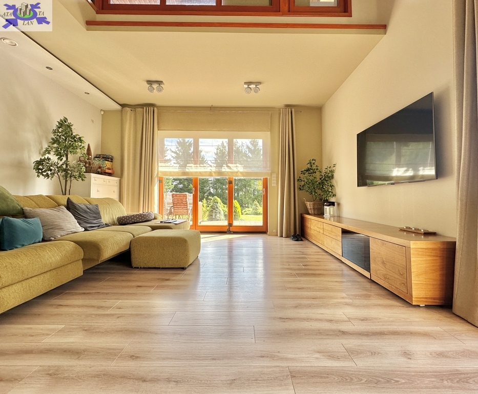 Marzysz o przestronnym, eleganckim domu, w którym połączono nowoczesne technologie z naturalnym pięknem? Szukasz miejsca, gdzie każdy dzień zaczyna się od widoku zieleni, a wieczory spędzasz przy ciepłym kominku? Ta oferta jest dla Ciebie!