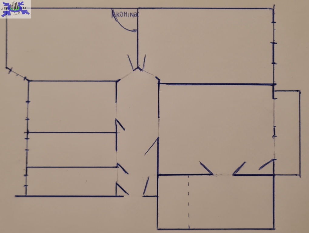 W skład mieszkania wchodzi 5 pokojów ,kuchnia ,łazienka ,obszerny hol z którego wchodzimy do wszystkich pomieszczeń z wyjątkiem jednego pokoju(jeden pokój jest przejściowy) .