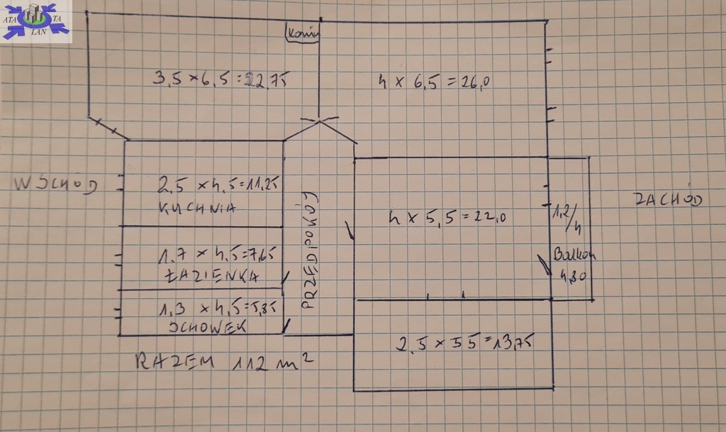 Rozkład mieszkania i wielkości pomieszczeń podane są na rzucie zamieszczonym wśród zdjęć.