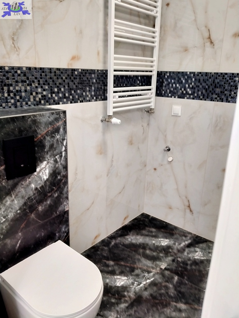elegancka łazienka z kabiną prysznicową, wc,podłogi z paneli i gresu,