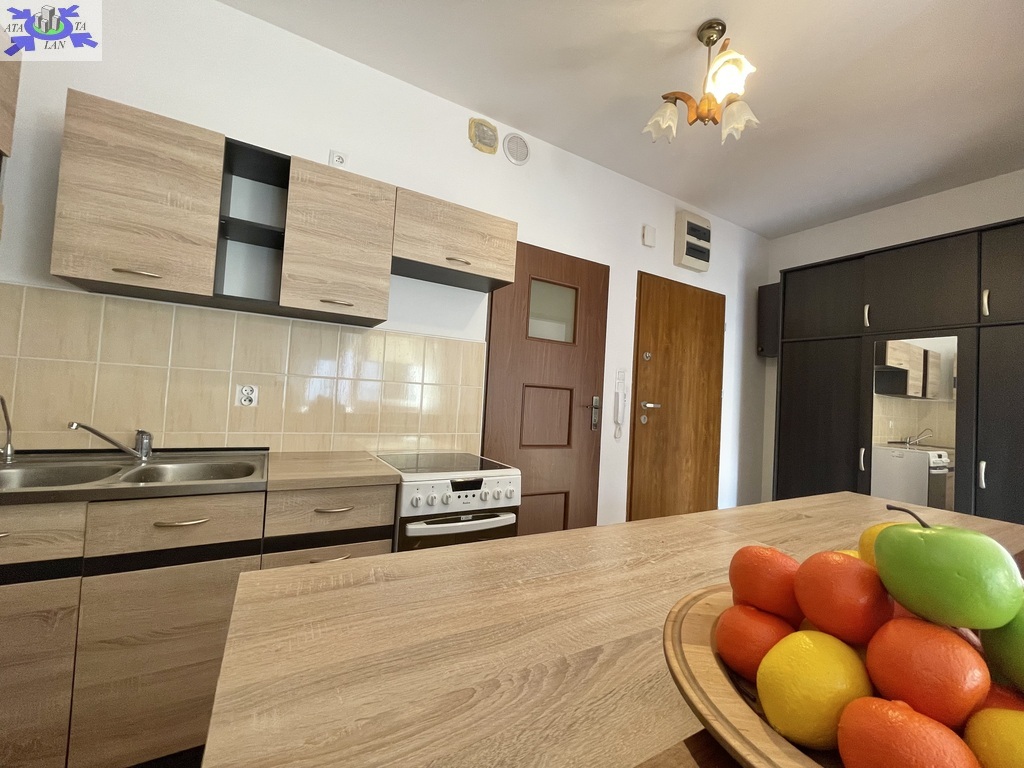 Mieszkanie składa się z salonu z wyjściem na balkon, aneksu kuchennego przedpokoju z dużą szafą oraz łazienki.