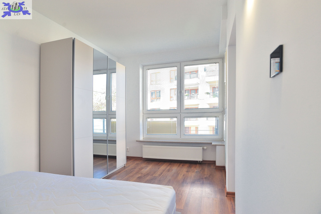 OPIS MIESZKANIA Do wynajęcia mieszkanie znajdujące się na trzecim piętrze V-piętrowego bloku z windą. Jego całkowita powierzchnia wynosi 43,80 m2, jest w pełni umeblowane i wyposażone. W mieszkaniu znajdują się dwa pokoje w tym jeden z aneksem kuchennym oraz łazienka z wc. Łazienka wyposażona jest w kabinę prysznicową, umywalkę, wc, pralkę i grzejnik drabinkowy. Część kuchenna jest umeblowana i wyposażona w sprzęty AGD. W sypialni jest łóżko z wygodnym materacem oraz szafa na ubrania. Zarówno z sypialni, jak i z salonu jest wyjście na balkon.