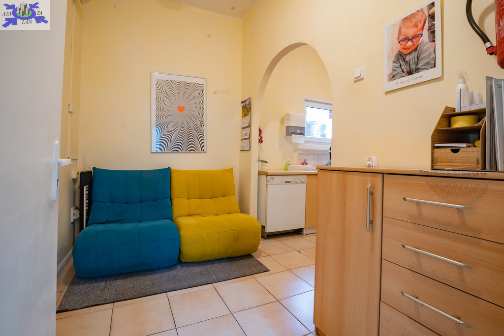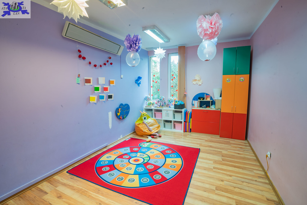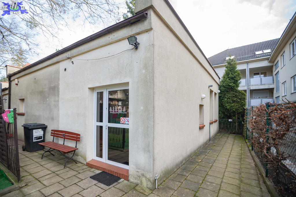 Drugi parterowy budynek usługowo-biurowy z lat 60-tych, obecnie przystosowany jako przedszkole, o powierzchni około 111 m2 i osobnym wejściu daje niezwykle szeroką możliwość adaptacji pod gabinety lekarskie, usługi kosmetyczne, biura lub na cele mieszkalne.