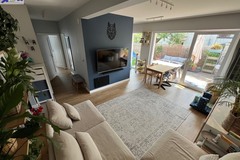 - Pokój dzienny z aneksem kuchennym (ok. 30 m2), wyjście na taras i ogród
