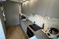 - Kuchnia - zabudowa stolarska, blat z konglomeratu, AGD (kuchenka, piekarnik, lodówka, zmywarka)