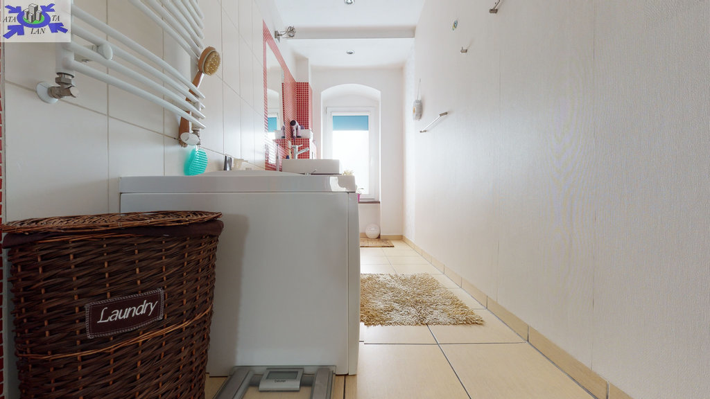 Świetną opcją jest możliwość powiększenia łazienki o część przylegającego do niej pomieszczenia gospodarczego.