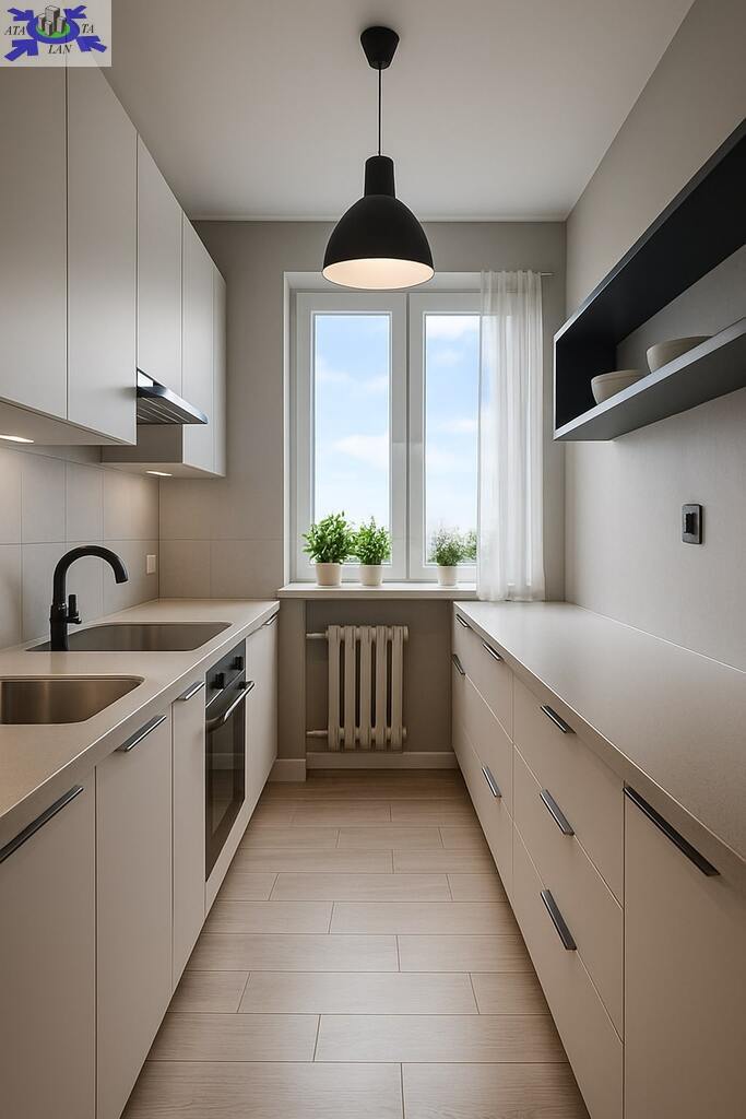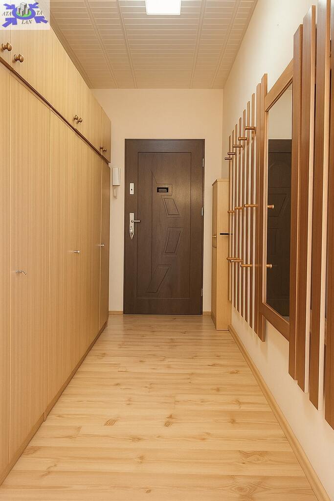 duży, przestronny korytarz z miejscem na szafy w zabudowie.