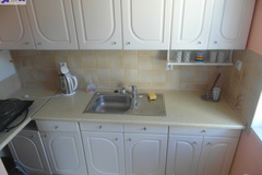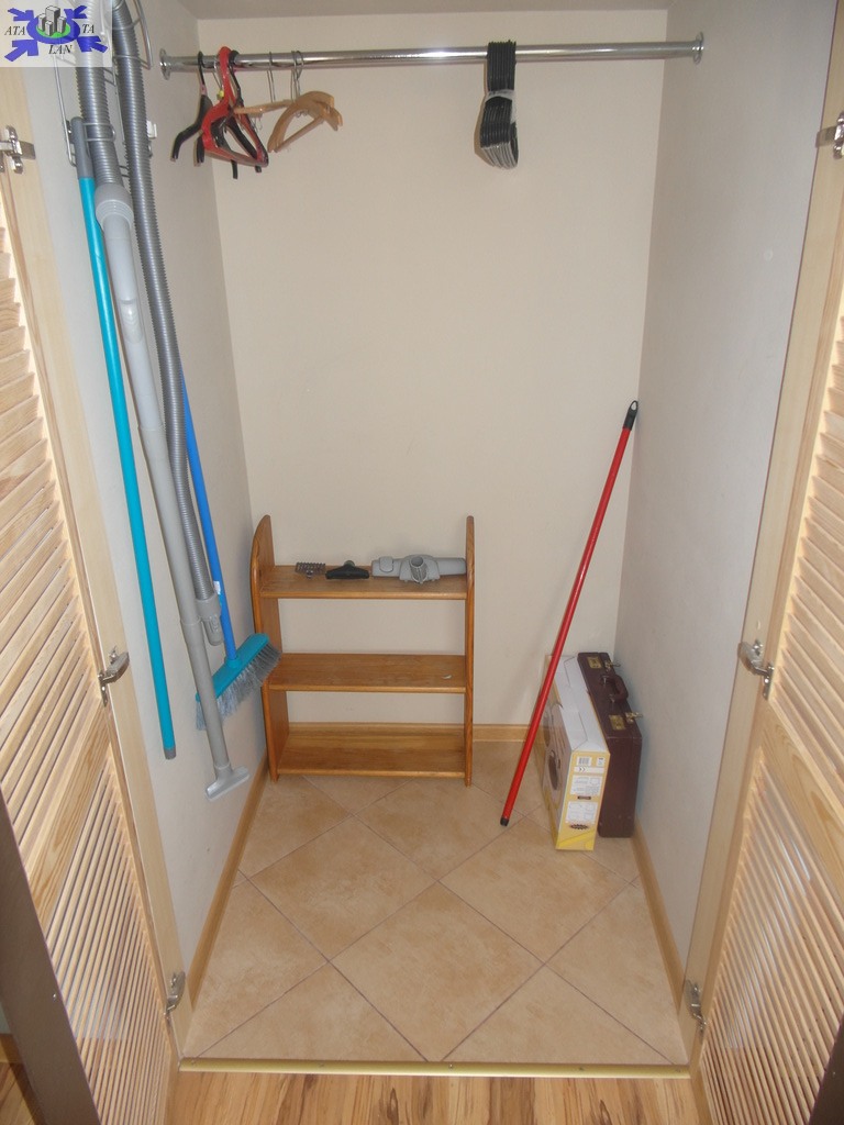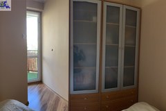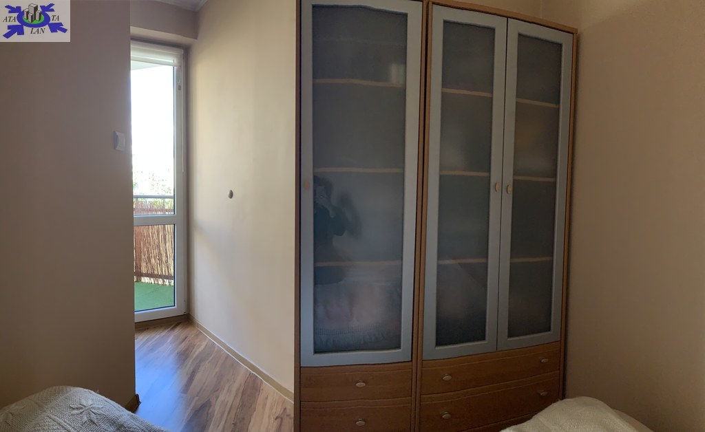 Mieszkanie składa się z większego pokoju o powierzchni 15m2 z wyjściem na duży balkon, maleńkiej sypialni 5m2, osobno kuchni 5m2 z oknem, łazienki z toaletą oraz przedpokoju. Mieszkanie oferowane jest do wynajmu po gruntownym remoncie. W pokojach na podłodze nowe panele, ściany gładzone i pomalowane w delikatnym kolorze (jedna ze ścian wykończona ozdobnym tynkiem strukturalnym). W większym pokoju znajduje się nowa, rozkładana kanapa dwuosobowa, stolik z telewizorem, dwie komody z szafkami i szufladami oraz obszerna szafa. W mniejszym pokoju znajdują się dwa regały z witrynami (typu POP) i łóżko. W kuchni nowe kafle na podłodze i fartuch kafelek na ścianach plus umeblowanie wykonane na wymiar w kolorze waniliowym, nowsza lodówka (na zdjęciu widoczna jeszcze starsza), nowa kuchenka indukcyjna, pochłaniacz oraz czajnik elektryczny. W łazience kafle na podłodze i kafelki na ścianach plus kabina prysznicowa, umywalka z blatem i szerokim lustrem wtopionym w kafelki oraz kinkietami, muszla podwieszana na geberycie. W przedpokoju kafle na podłodze (plus nowy wieszak na ubrania - na ścianie).