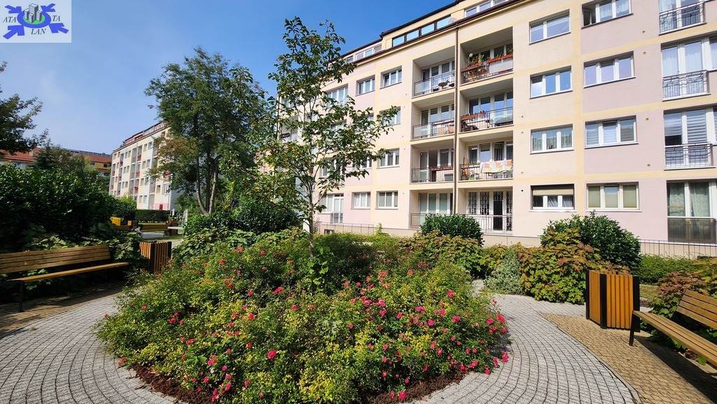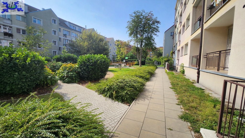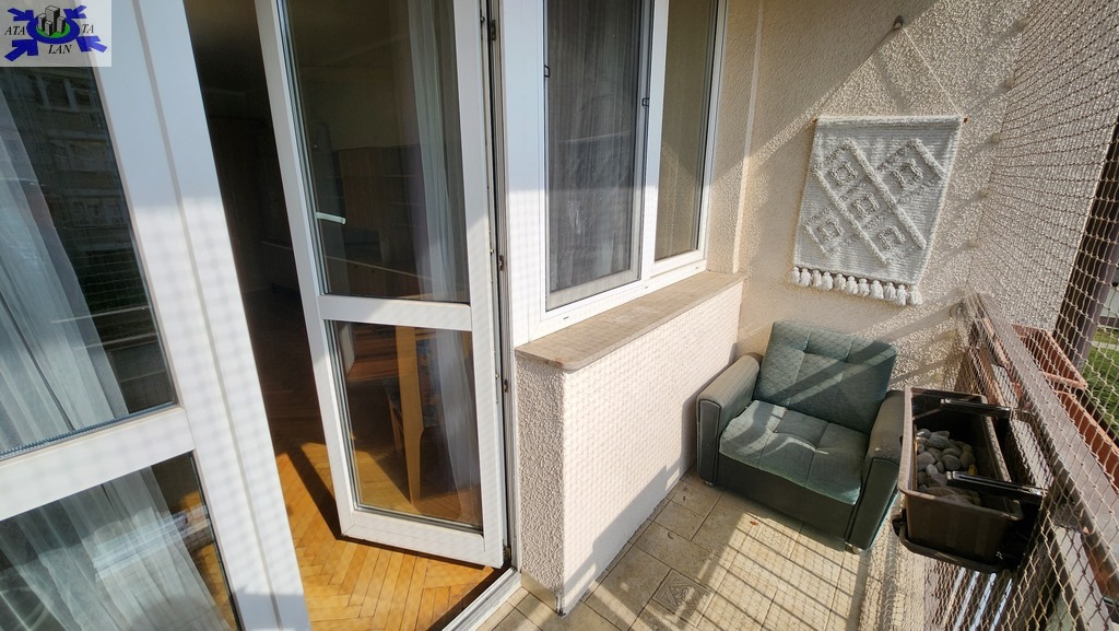Okna mieszkania wychodzą na dwie strony świata. Salon z balkonem typu logia od południa z widokiem na ładnie zagospodarowane podwórze z licznymi nasadzeniami, alejkami i ławeczkami.