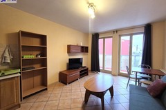 - salon z aneksem kuchennym (szafki kuchenne i sprzęt AGD pozostaje na wyposażeniu). Z salonu wyjście na balkon.
