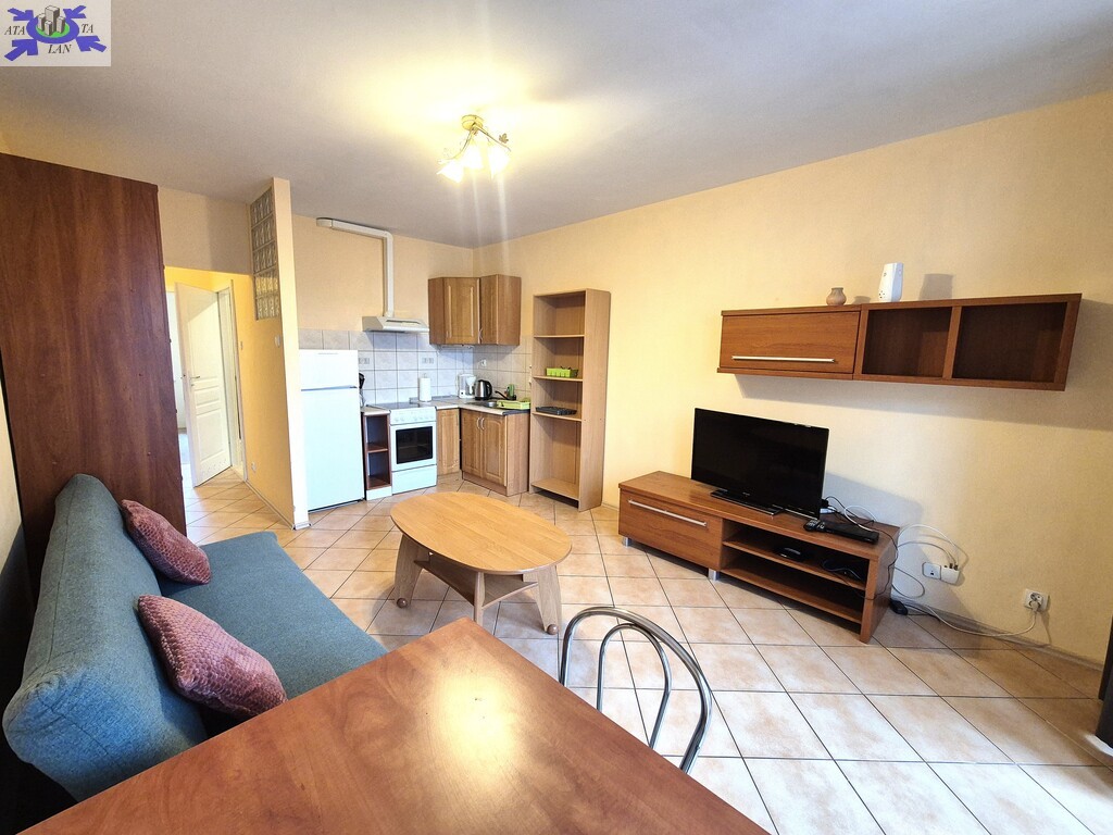 - salon z aneksem kuchennym (szafki kuchenne i sprzęt AGD pozostaje na wyposażeniu). Z salonu wyjście na balkon.