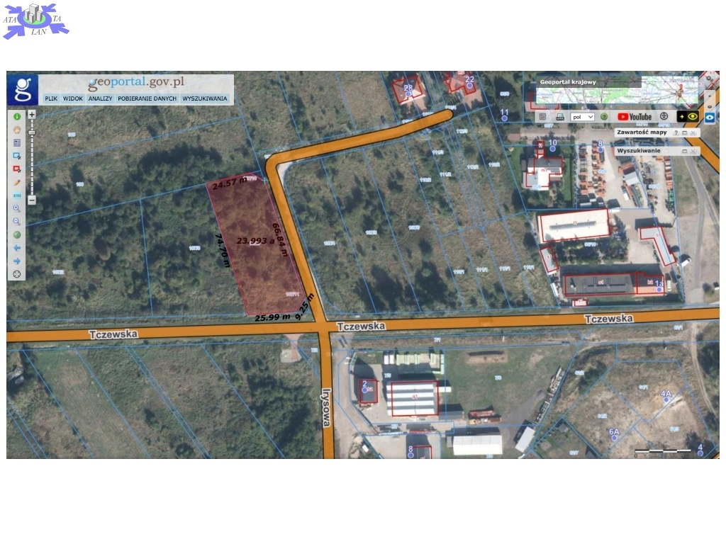 Na sprzedaż działka komercyjna o powierzchni 2389 m2, położona w atrakcyjnej lokalizacji przy ulicy Tczewskiej w Szczecinie (dzielnica Wielgowo).