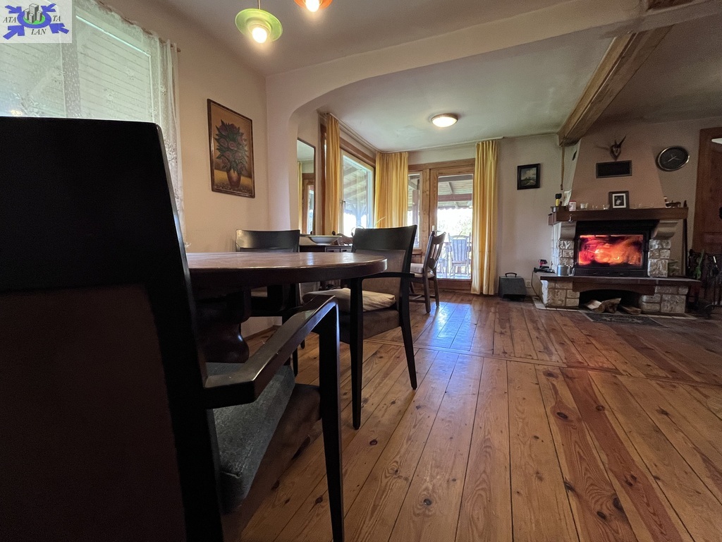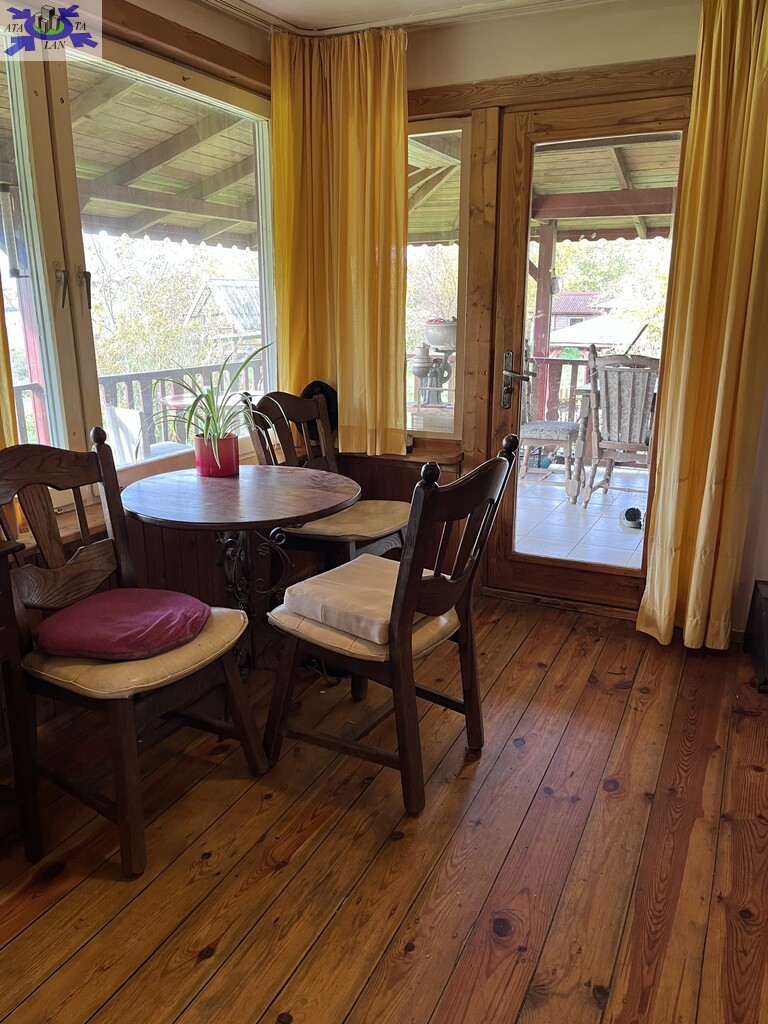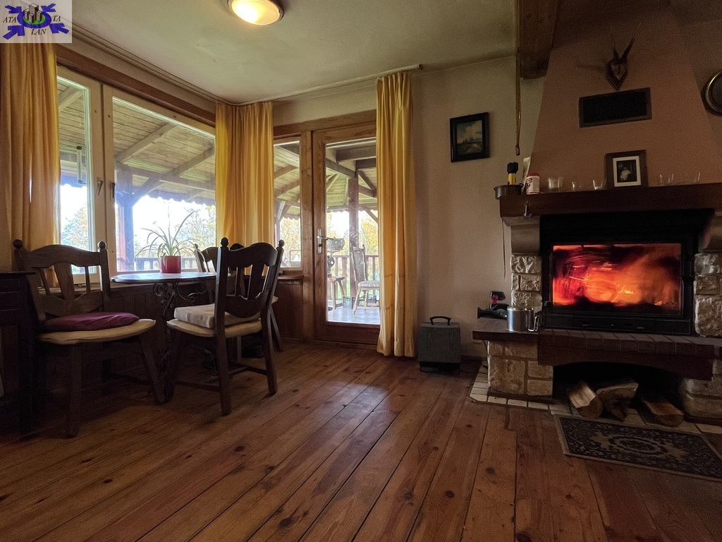 Drewniany dom całoroczny o dwóch kondygnacjach, w pełni wyposażony i podpiwniczony