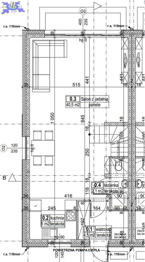 - wiatrołap o pow. 4,5 m2