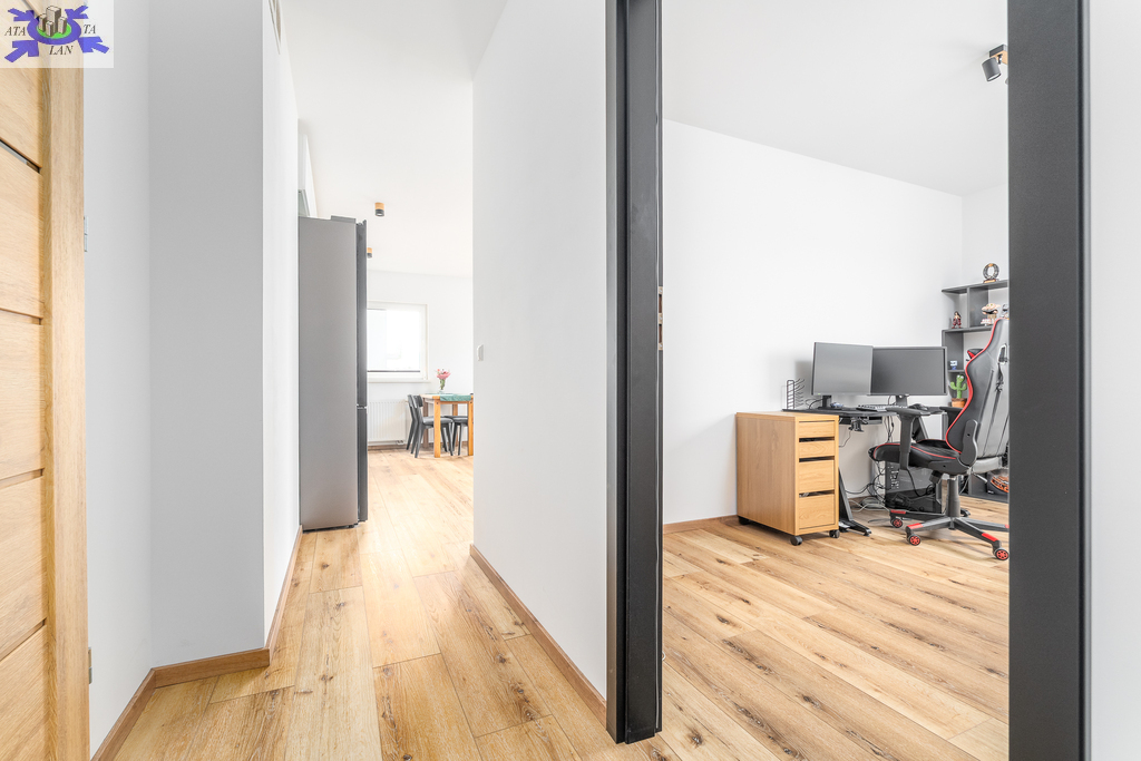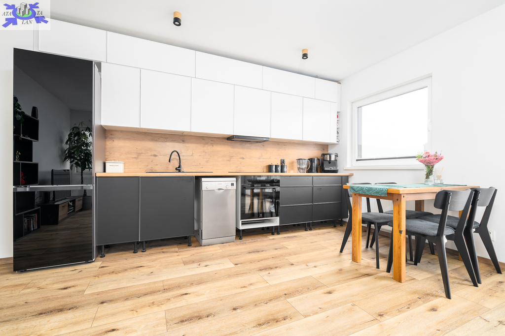 Mieszkanie jest gotowe do wprowadzenia, wykończone zostało materiałami o wysokiej jakości, meble kuchenne wykonane na wymiar i wyposażone w dobrej klasy sprzęt AGD, przedpokój w zabudowie obszernymi szafami, samo mieszkanie jest widne i słoneczne, posiada bardzo funkcjonalny rozkład pomieszczeń.