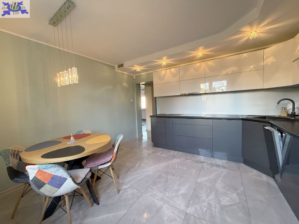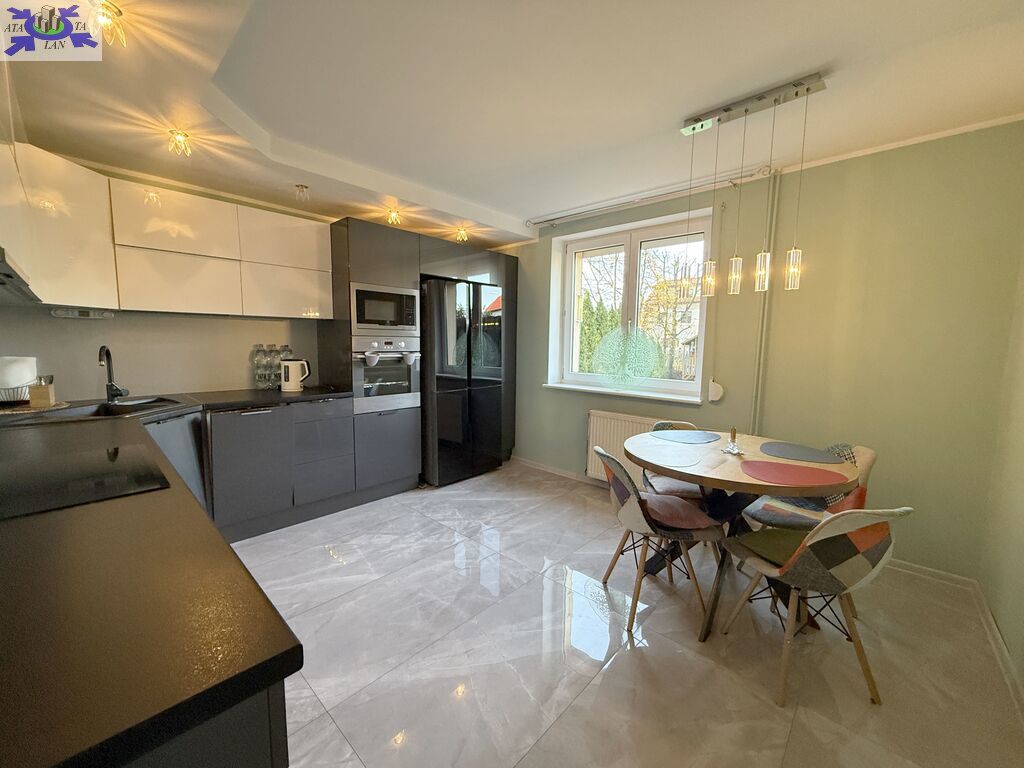 Kuchnia przestronna, z nowoczesną zabudową oraz sprzętem AGD, które pozostają w cenie (bez lodówki).