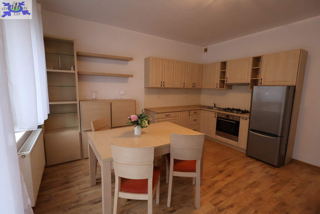 - Aneks kuchenny wyposażony w kuchenkę gazową, piekarnik, lodówkę, meble w zabudowie.